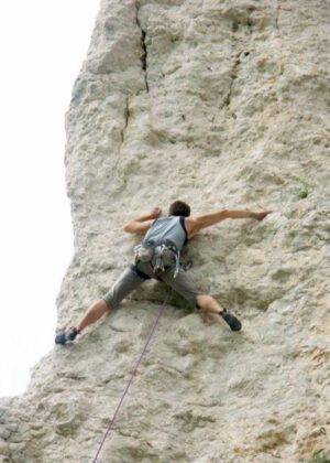 Закуска, отиване на скалите, запознаване с екипировката и инвентара за катерене, загрявка